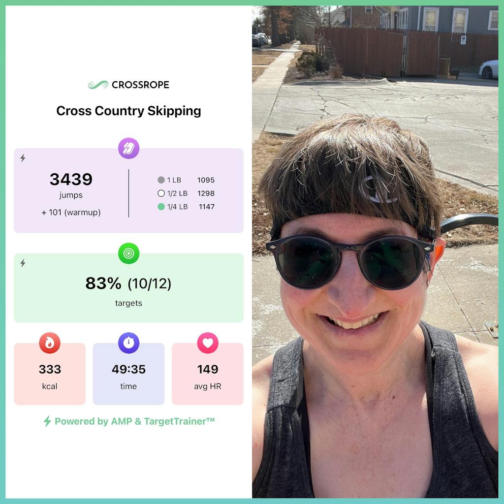 I use my ropeless jump rope almost every day. It’s great when I can’t get outside. It really gets my heart rate elevated.