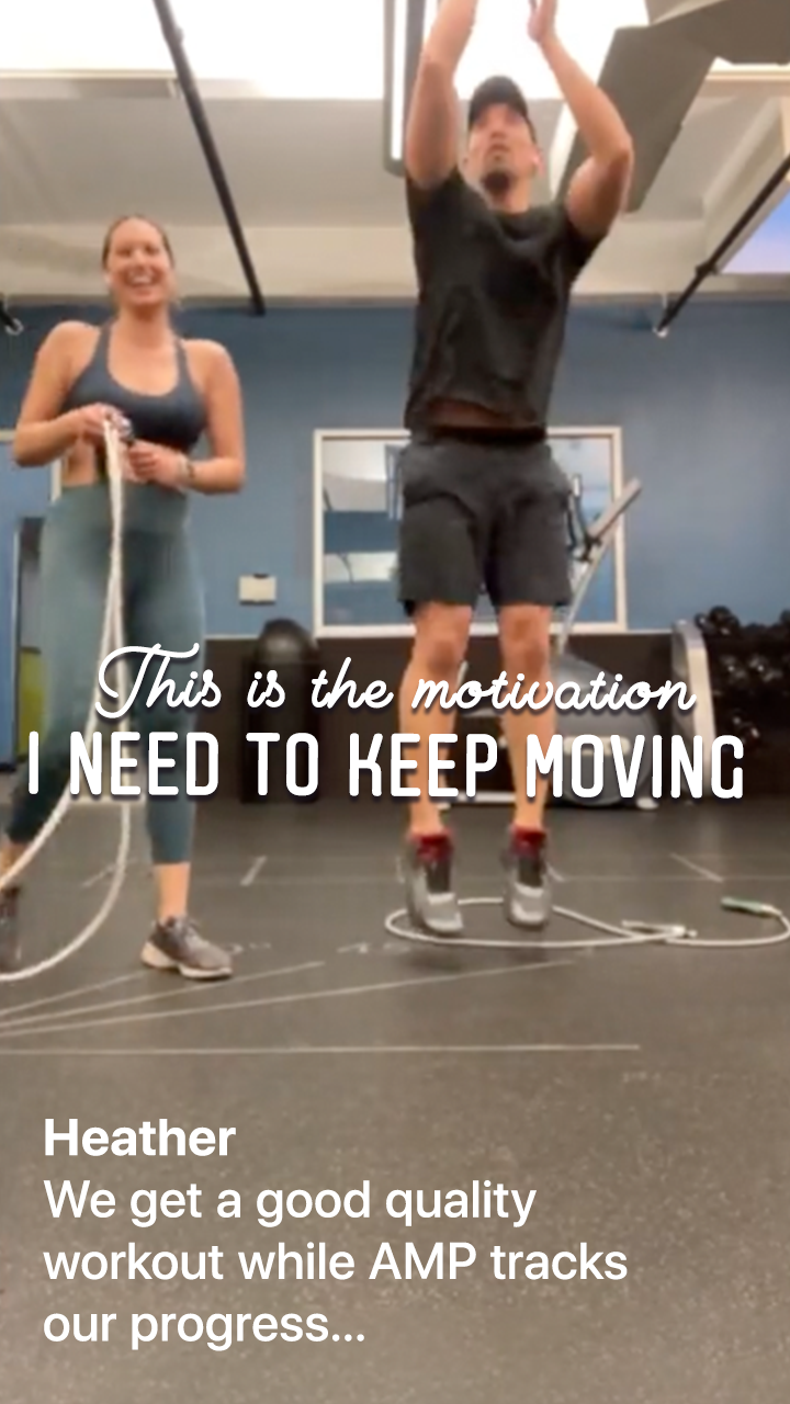 "AMP provides a full-body workout, no matter your fitness level. It's a game-changing experixence, all tailored to my fitness level.