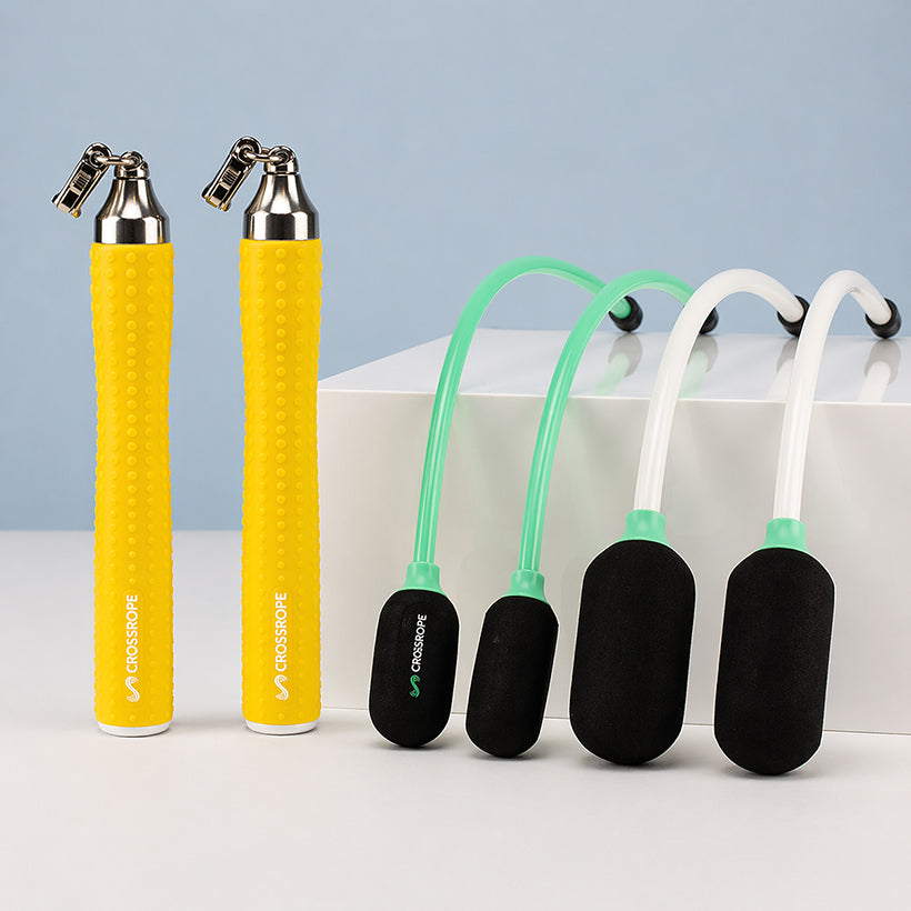 Includes 1/4 LB and 1/2 LB Ropeless weighted attachments + a pair of Limited Edition (Yellow) Slim handles. Get a quiet workout in any space. Mimics the weighted jump rope experience without any tripping. Tangle-free and portable.