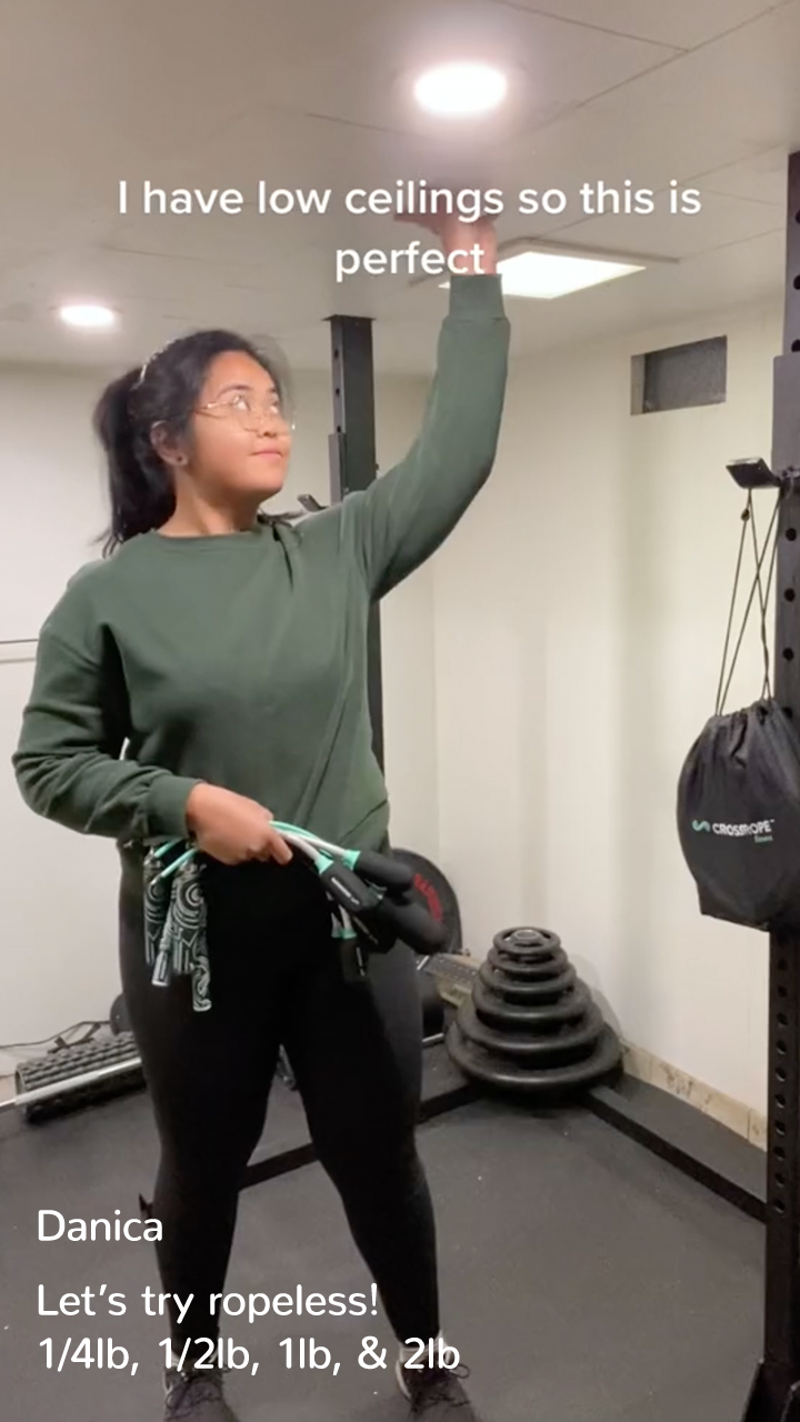 I recently started using the ropeless/cordless jump rope set because we have low ceilings and people sleeping on the floor above. They are fantastic! They’ve really motivated me to stick with my workouts, because I can do them anywhere. I’ve even started jump roping outside to make sure I can use traditional ropes as well (switch between cordless and corded). I love it so much that I’m now upgrading to heavier ropes, including 1-pound and 2-pound weights. Highly recommend!